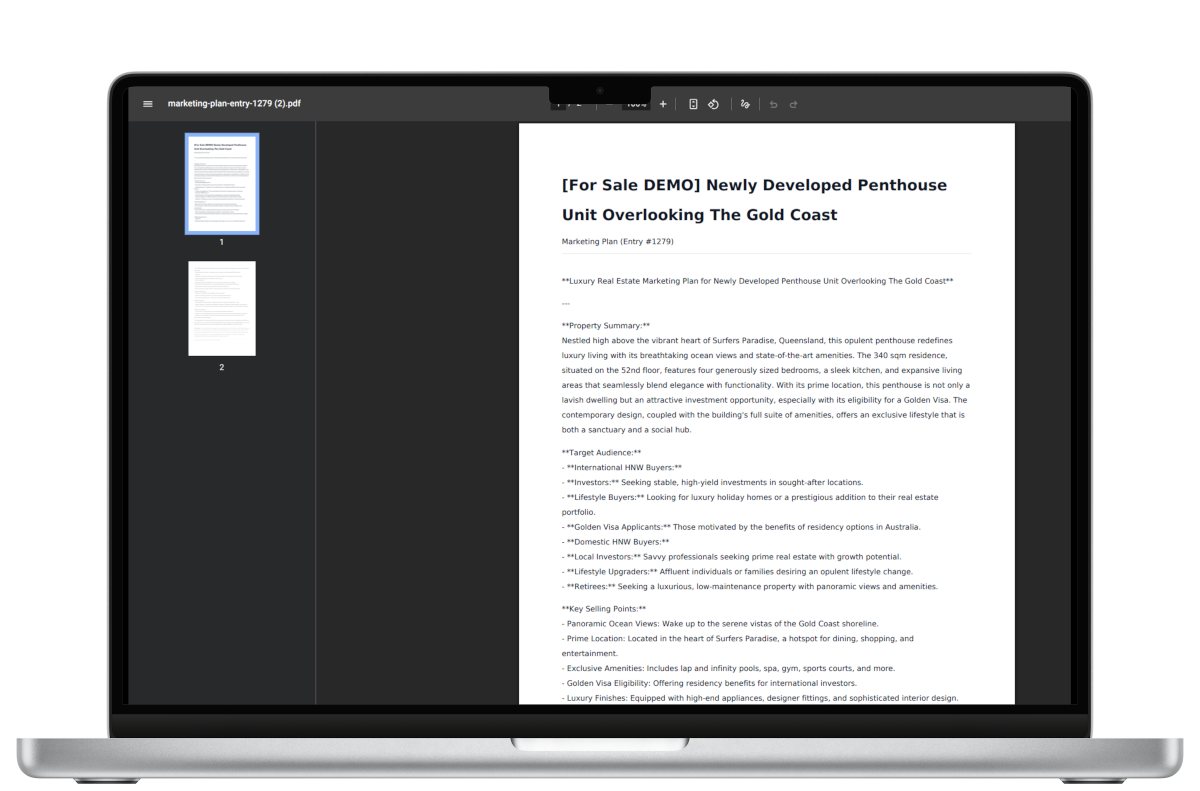 Generate a marketing plan tailored to your listing’s data (with property vs. accommodation logic). Stored privately for the owner only. Includes step-by-step, channel mix (site, social, email), content prompts, ad angles, CTA scripts, KPI checklist, UTM templates, and quick “do-this-next” tasks.